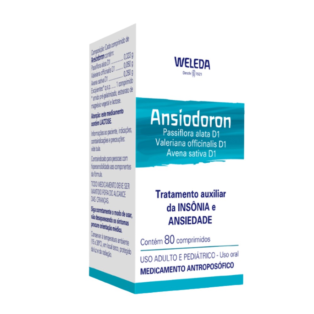 Ansiodoron 80 comprimidos é um medicamento antroposófico da weleda, produzido com ingredientes de origem 100% natural. Indicado no tratamento auxiliar da insônia e ansiedade. A indicação deste medicamento somente poderá ser alterada a critério do prescritor.